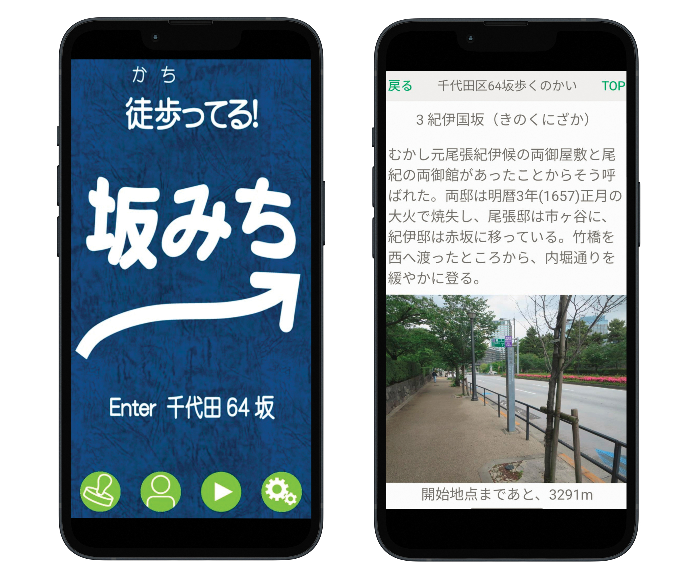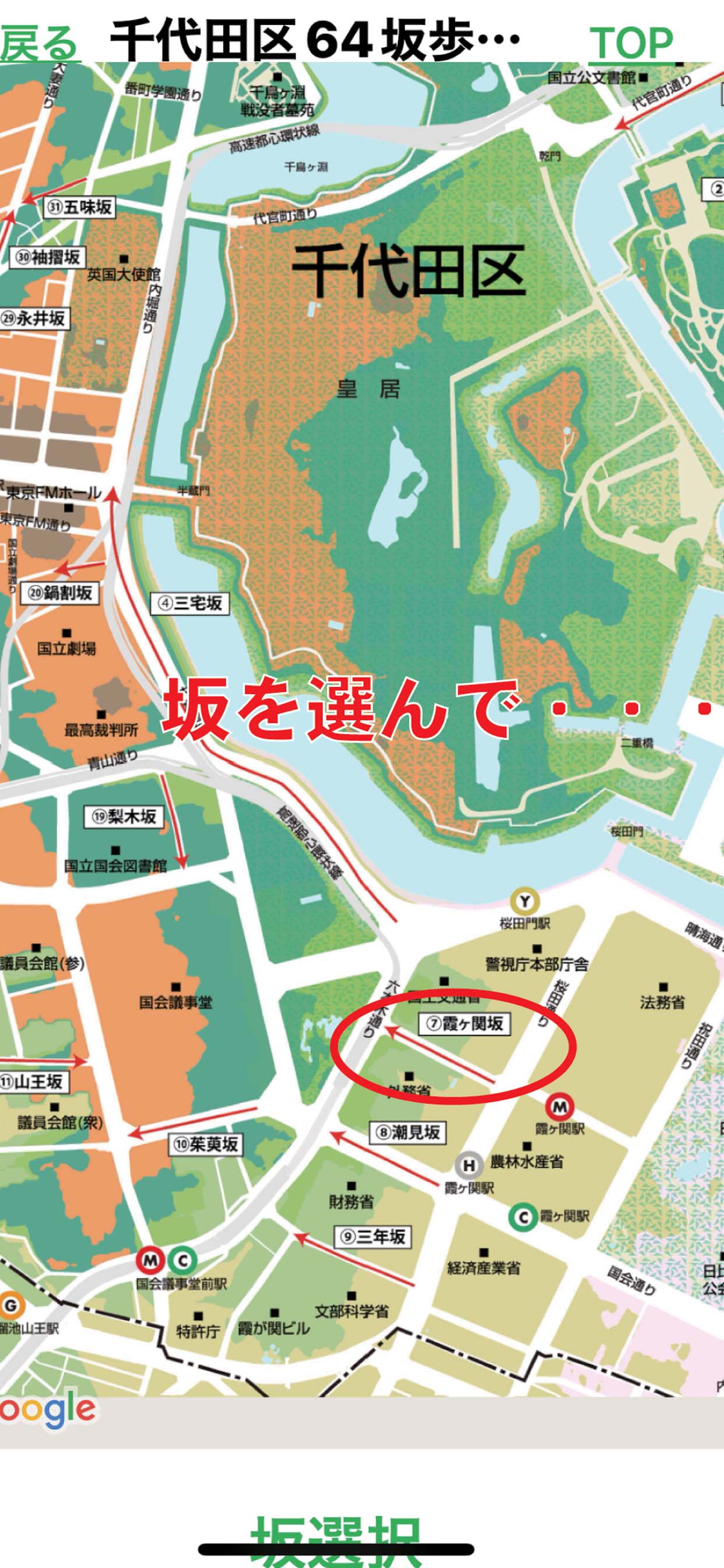 千代田区内にある名前のついている64坂を歩くアプリです。